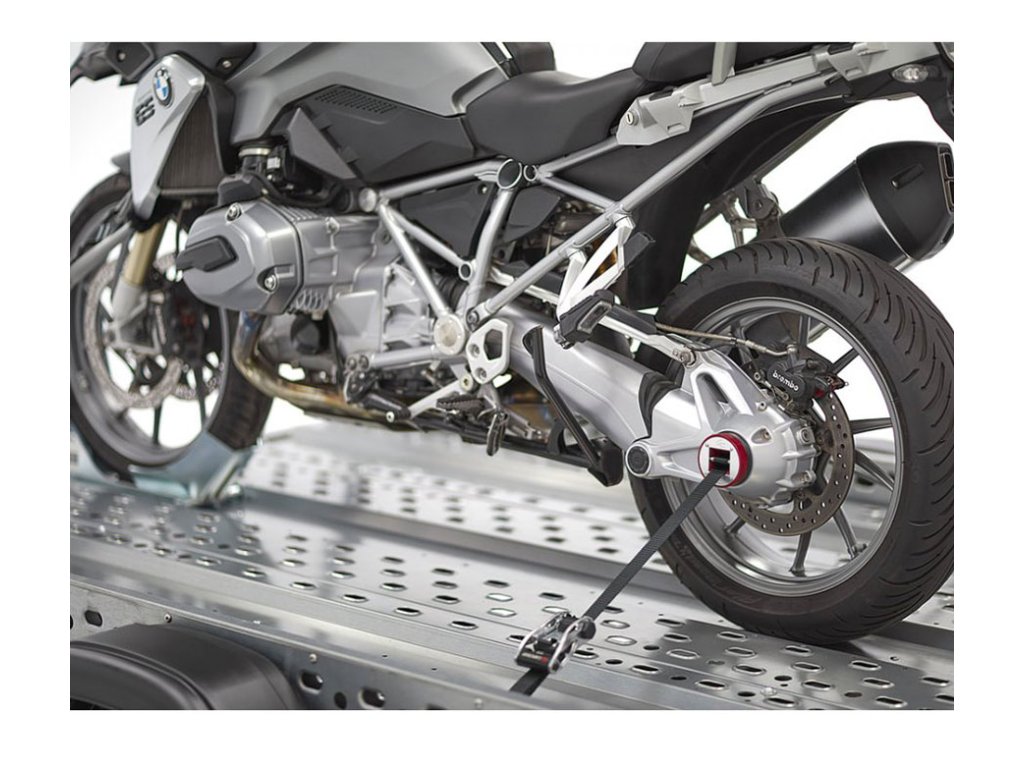 CapStrap systém uchytenia letmého kolesa zadnej nápravy s priemerom 5,3 cm, pre motocykle BMW. Tento inovatívny upínací systém šikovne využíva jednu z technických vlastností BMW. - žiadne zaťaženie systému odpruženia - použitie je veľmi jednoduché a rýchle viď. video - vysoko kvalitný materiál ABS, ktorý zabraňuje poškriabaniu - žiadny kontakt s výfukom alebo kufrom na motocykli - dodáva sa s praktickou prepravnou taškou, račne a popruhy - upínacia kapacita 500 daN