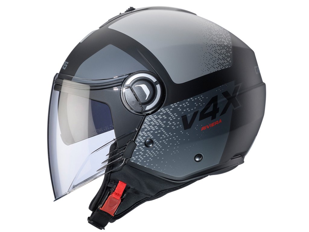 RIVIERA V4X je moderná otvorená prilba s elegantným dizajnom, navrhnutá pre každodenné mestské jazdenie, ale aj kratšie výlety mimo mesta. Kombinuje komfort, bezpečnosť a technologickú pripravenosť v kompaktnom vyhotovení, ktoré sa ľahko zmestí aj pod úzke sedadlá skútrov a motocyklov.