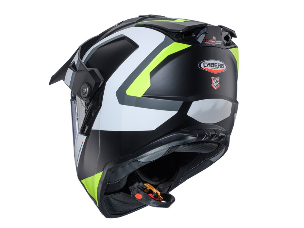 Prilba je vybavená technológiou Caberg SOS Medical ID, ktorá umožňuje uložiť zdravotné a kontaktné údaje priamo do prilby pomocou NFC čipu.