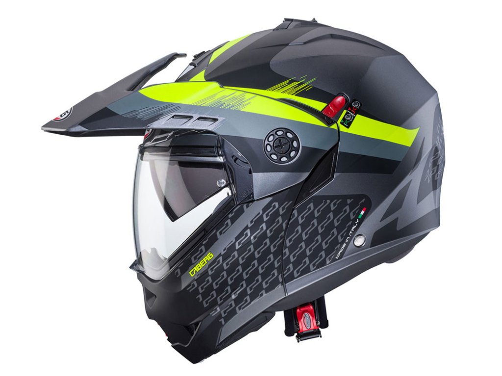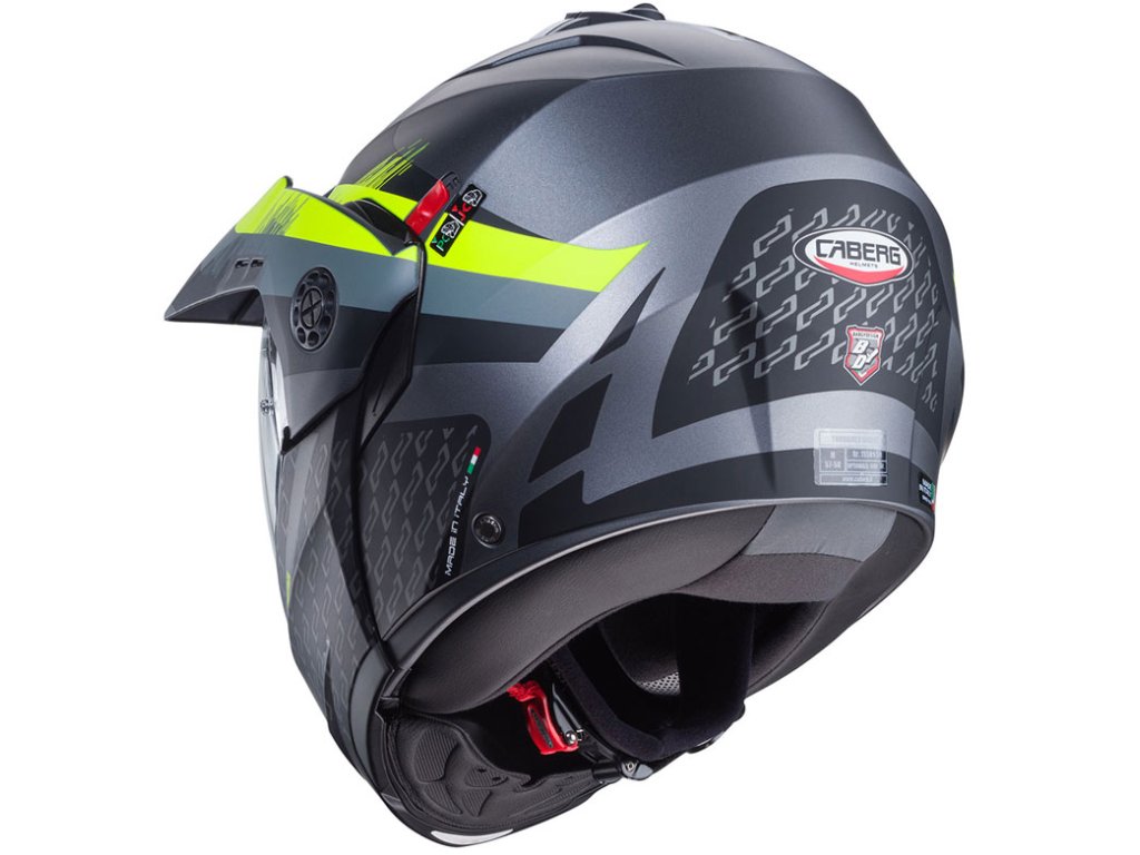 Caberg TOURMAX X je prvá vyklápacia adventure prilba na trhu, navrhnutá špeciálne pre jazdcov motocyklov Enduro a Maxi Enduro. Spája komfort, funkčnosť a bezpečnosť v modernom prevedení s najnovšou homologáciou ECE 22.06.