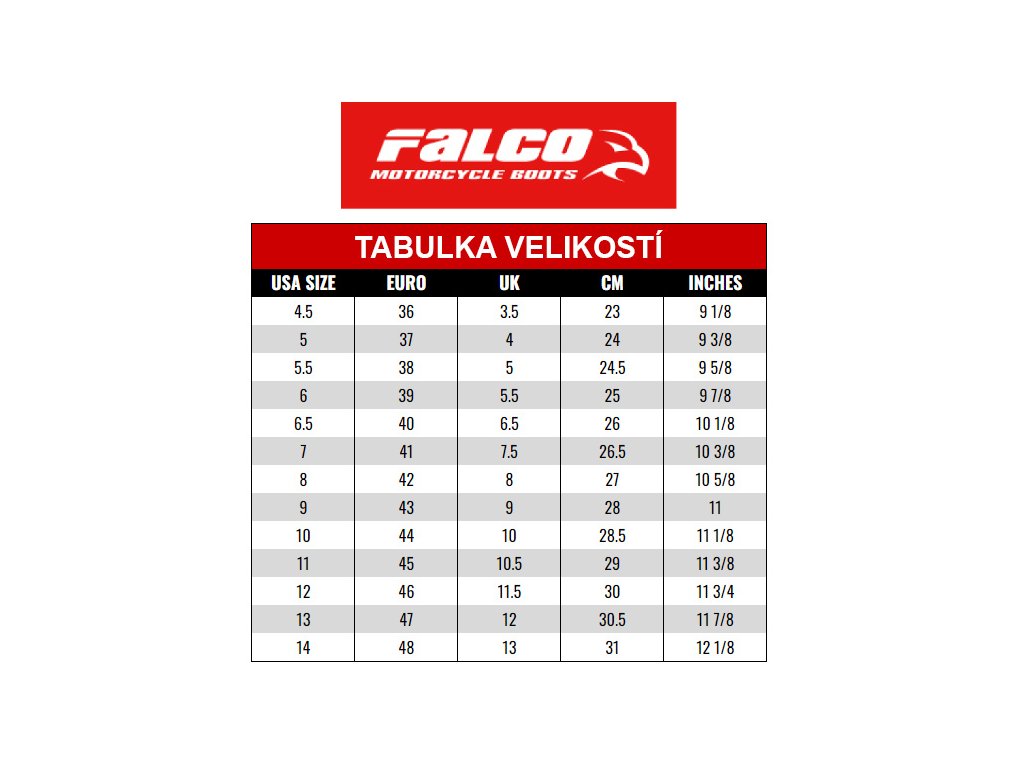 - D3O Impact protection – D3O chránič nárazu vyvinutý na zimné športy a vojenské využitie. Ako prvý ho do motocyklových topánok použil práve Falco. D3O inteligentné molekuly pri pomalom pohybe voľne prúdia, ale v prípade nárazu sa zablokujú, aby absorbovali energiu nárazu. Sila nárazu prenášaná do oblasti členka a chodidla je výrazne znížená vďaka exkluzívnej podpore D3O.