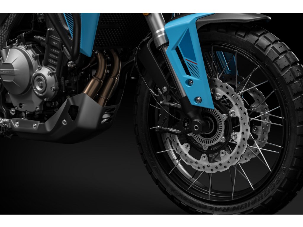 Morbidelli T502X je všestranný adventure motocykel, ktorý bol navrhnutý pre jazdcov túžiacich po dobrodružstve bez obmedzení. Kombinuje silný dvojvalcový motor, modernú elektroniku, komfortné jazdné prvky a precízne spracovanie, ktoré zvládnu mestský asfalt aj štrkové trasy. Vďaka 18 l palivovej nádrži s nízkou spotrebou a efektívnemu motoru dosiahneš dlhý dojazd bez častých zastávok. TFT displej s navigáciou, USB-C nabíjanie a kompletné LED osvetlenie zvyšujú komfort aj bezpečnosť. Bosch ABS s režimami pre cestu i off-road ti umožní prispôsobiť jazdu podľa povrchu, zatiaľ čo doplnky ako ochranný kryt, padací rám a centrálny stojan uľahčujú údržbu a ochranu motocykla aj pri ťažších podmienkach.