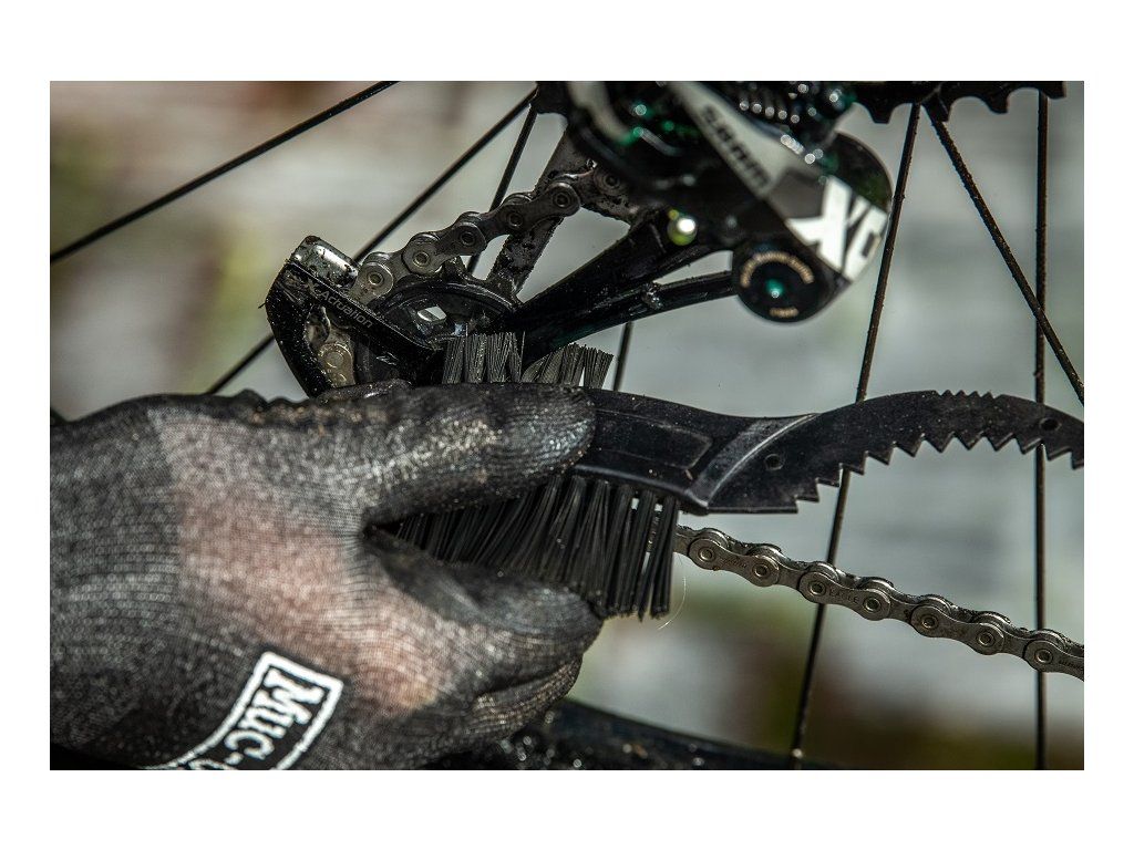 Muc-Off Claw Brush má kvalitnú novú 3 hlavovú konštrukciu s nylonovými štetinami rôznej dĺžky. Je vhodná najmä na reťaze a ozubené kolečka.