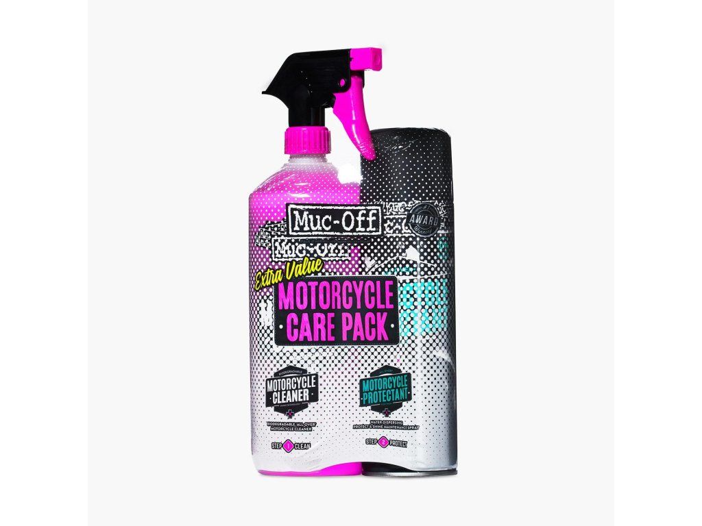 Muc-Off Motorcycle Care Pack je základná sada pre umývanie a konzerváciu vášho motocykla. Muc-Off Nano Tech Bike Cleaner je dokonalý a šetrný čistiaci prostriedok a Muc-Off Bike Protect poskytuje špičkovú ochranu vďaka teflonu. Sú to základné produkty z produktovej rady Muc-Off. Tieto produkty sú predajnými evergreeny a prečo ich teda nespojiť ...