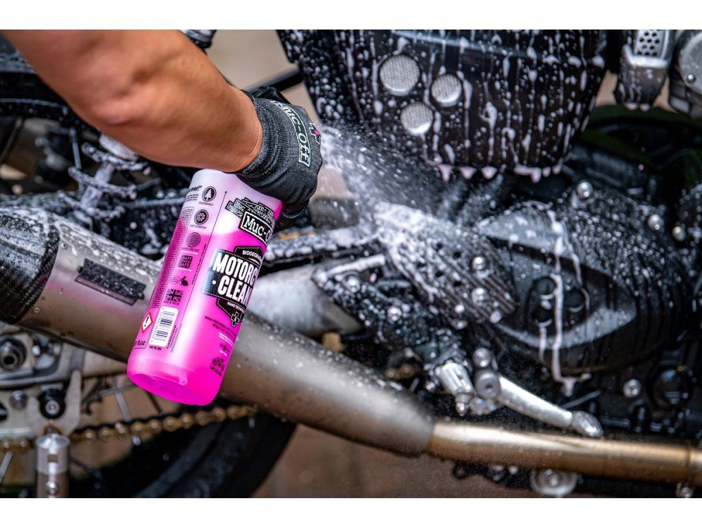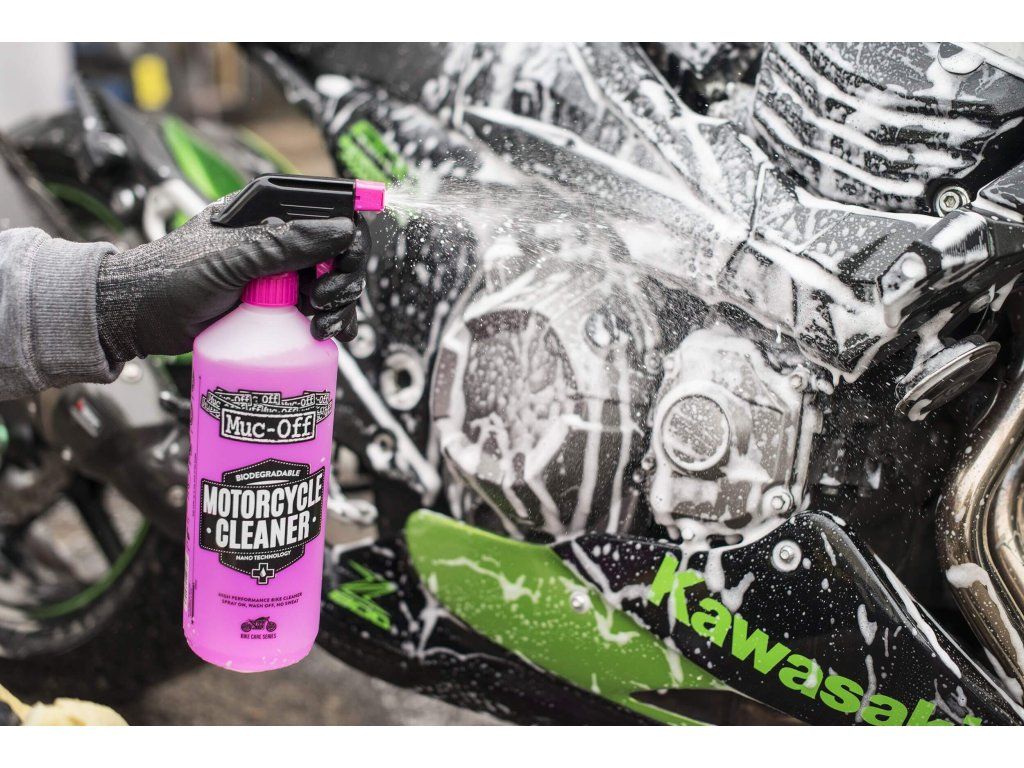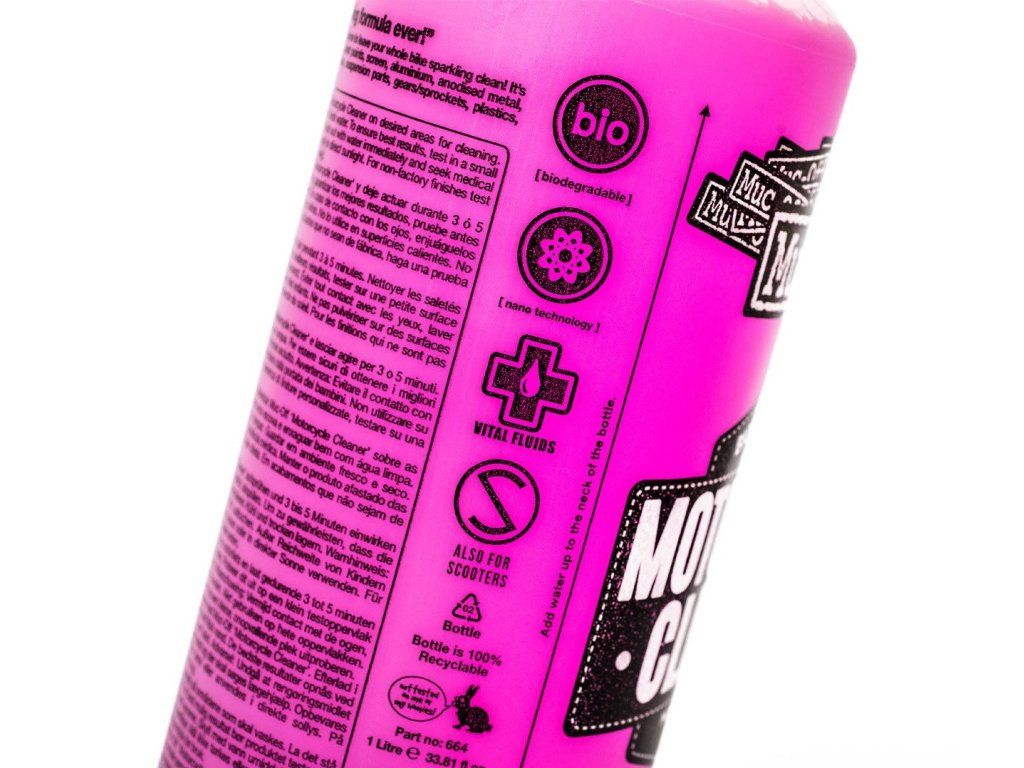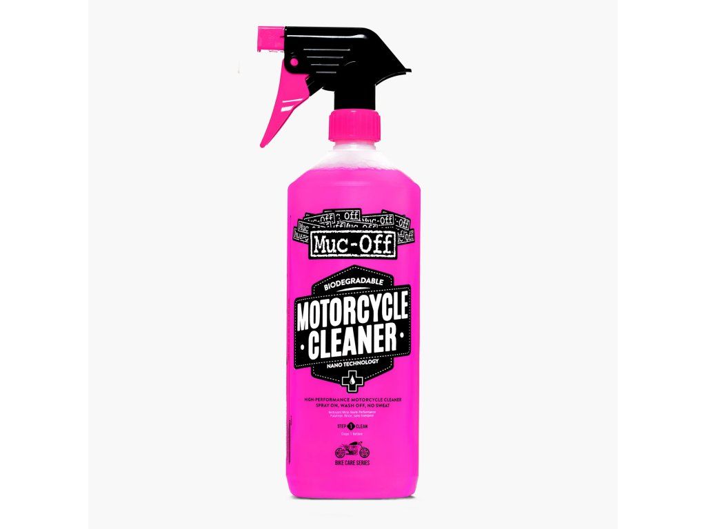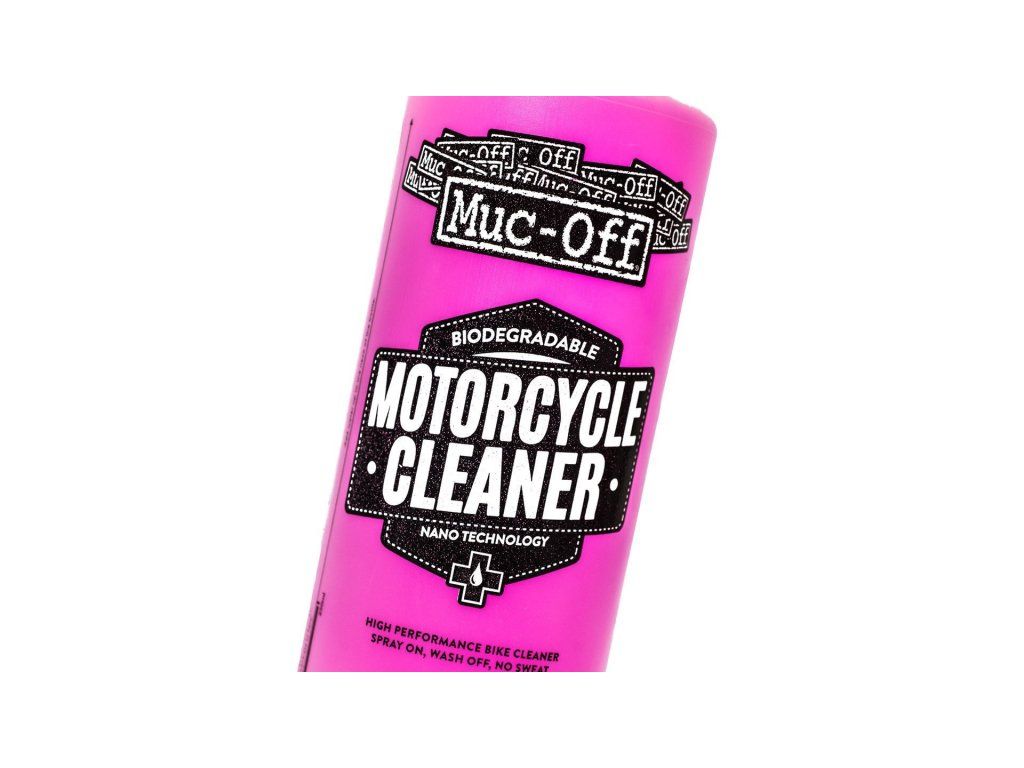 Muc-Off Motorcycle Cleaner 1 L - čistiaci prípravok na všetky časti motocykla založený na Nano Technológii. Je zásaditý a neobsahuje žiadne kyseliny ani rozpúšťadlá, možno ho bezpečne použiť na umývanie materiálov, z ktorých sú dnes vyrábané moderné motocykle. Skutočne jednoduché použitie zabezpečuje aj to že ho netreba žiadnym spôsobom riediť alebo inak pred aplikáciu pripravovať.
