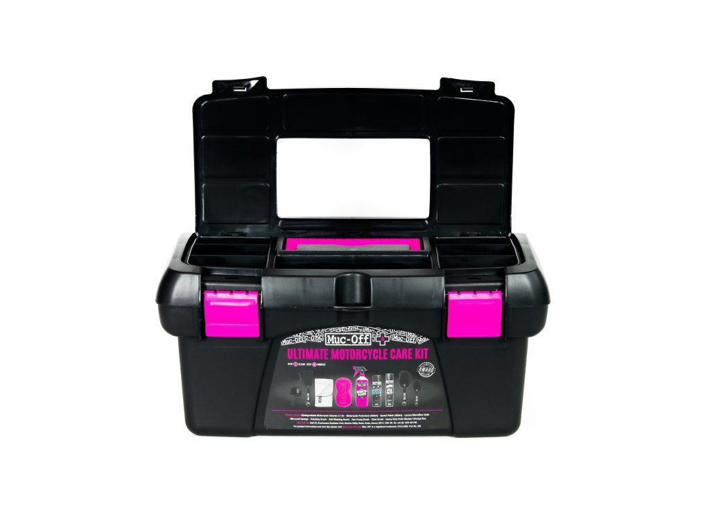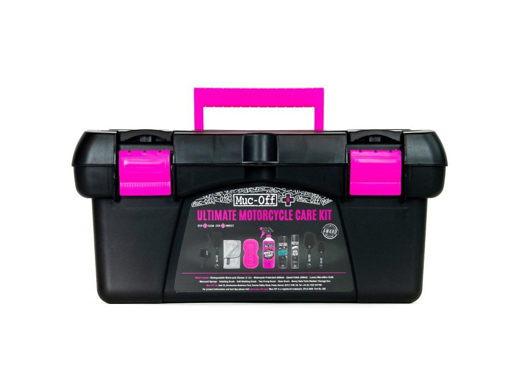 Súprava na čistenie motocyklov Muc-Off Ultimate Care Kit pokrýva všetky základy, pokiaľ ide o čistenie, ochranu a mazanie vášho motocykla. Táto súprava nie je špecificky určena len pre jeden druh motocyklov a je ju možné použiť na cestné motocykle, terenné motocykle a štvorkolky. Táto súprava je dokonalým narodeninovým alebo vianočným darčekom pre každého fanúšika motoriek!