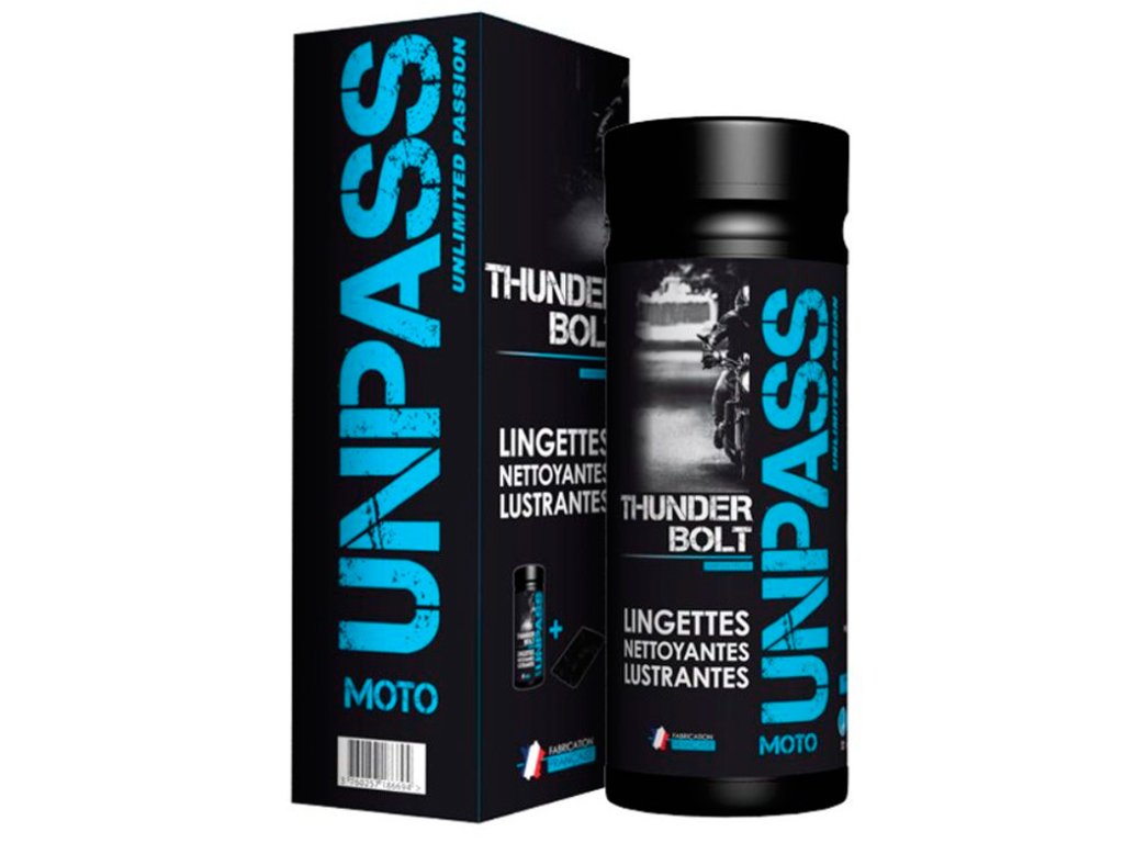 UNLIMITED PASSION predstavuje novú generáciu ALL-IN-ONE obrúskov: THUNDERBOLT. Obrúsky sú navrhnuté tak aby poskytli maximálnu účinnosť a uľahčili údržbu vášho motocykla. Nadchnú Vás svojou čistiacou silou, univerzálnosťou a schopnosťou obnoviť vzhľad vášho stroja ... bez námahy, vybavenia a bez vody.