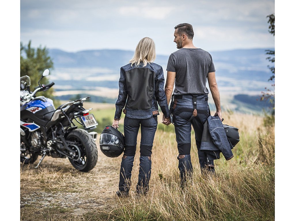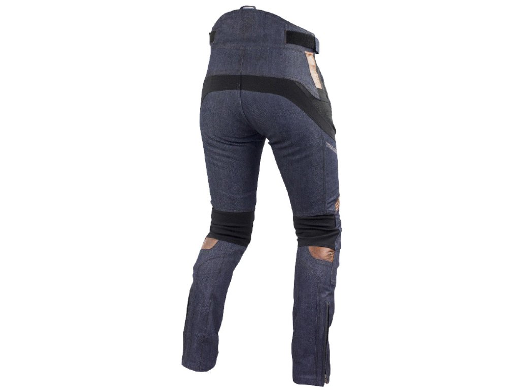 Všetci motocykloví jazdci ocenia pohodlie, ktoré zaistia strečový a priedušný materiál v rozkroku a vyvýšení pás. Kolenné chrániče Trilobite® sú súčasťou nohavíc. Voliteľne ich možno vybaviť chráničmi bokov. Použité YKK zipsy podčiarkujú celkovú kvalitu nohavíc. Nohavice majú dizajnovú kombináciu tmavo modrej džínsoviny a hnedej ručne voskovanej kože, ktorá má veľmi výrazný vzhľad. K dispozícii sú aj vo verzii pre všetky motorkárky.