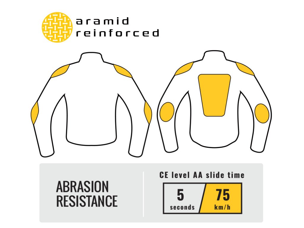 ▪ Vystuženie z aramidových vlákien v oblasti ramien, lakťov a chrbta