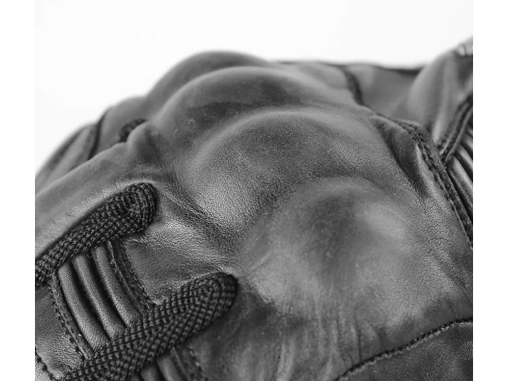 Rukavice Café sú určené pre tých, ktorí hľadajú kombináciu výnimočného pohodlia, štýlu a vysokej úrovne ochrany vďaka chrániču kĺbov z termoplastu, ktorý je napevno zasadený do kože. Celé rukavice sú vyrobené z príjemnej hovädzej prírodnej kože najvyššej kvality A plus, ktorá bola použitá pre svoj retro vzhľad s použitím technológie voskovaného voskovým efektom. Strečové panely z kože na palci, ukazováku a prostredníku zaistia ľahký úchop riadidiel a zjednodušené ovládanie brzdovej páčky a páčky spojky. Spodná strana rukavíc je vystužená, aby pomohla zabrániť odtlačkom dlaní počas dlhších ciest. Pri navliekaní rukavíc oceníte pútko, vďaka ktorému rukavice ľahko nasadíte na ruku.